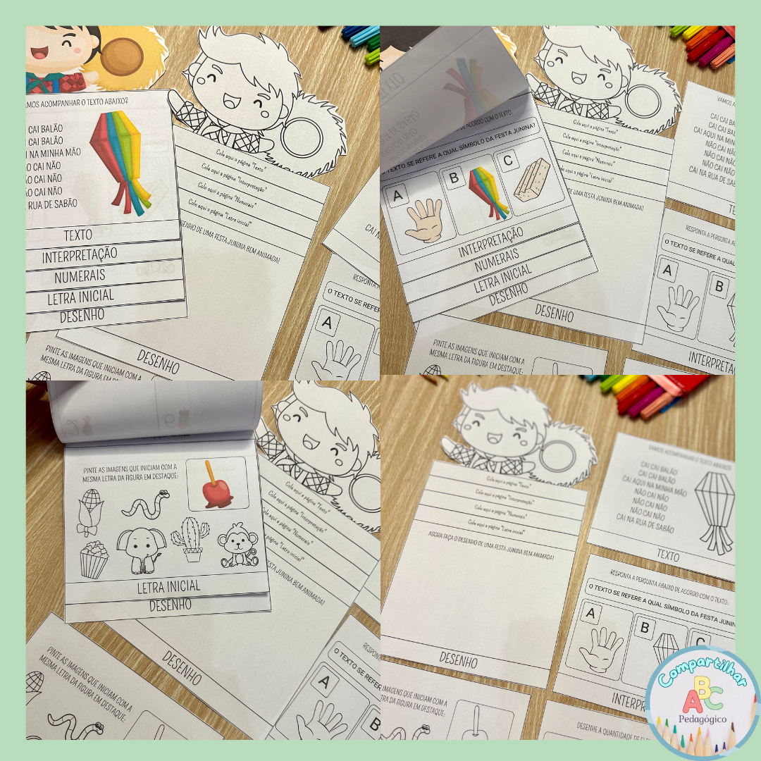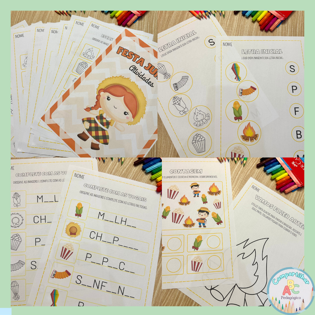 Kit Festa Junina com 60 páginas inclui os itens abaixo: